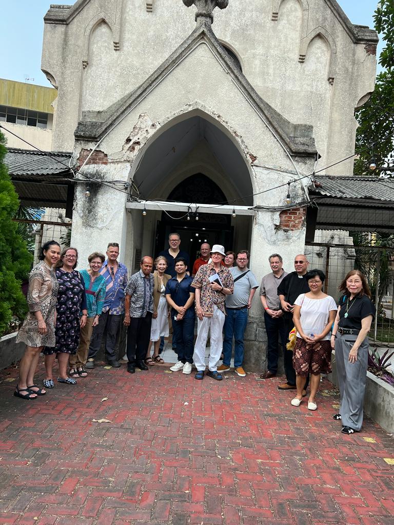 De dienst werd gehouden in de hal van het Primaya hospitaal. Vanwege een renovatie van de kapel vinden de diensten tijdelijk op deze mooie en historische plek plaats. Het was ooit de monumentale villa van Raden Saleh, de beroemde Indonesische kunstschilder uit de 19e eeuw.